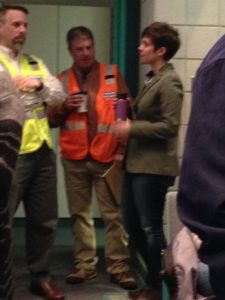So were the contractors who were demolishing the properties in Zone 1. John Blotsky, the head of the project for Amereco was there to respond to questions about the demolition. The others involved with the demolition wore their day glo orange safety vests so they could be easily spotted.